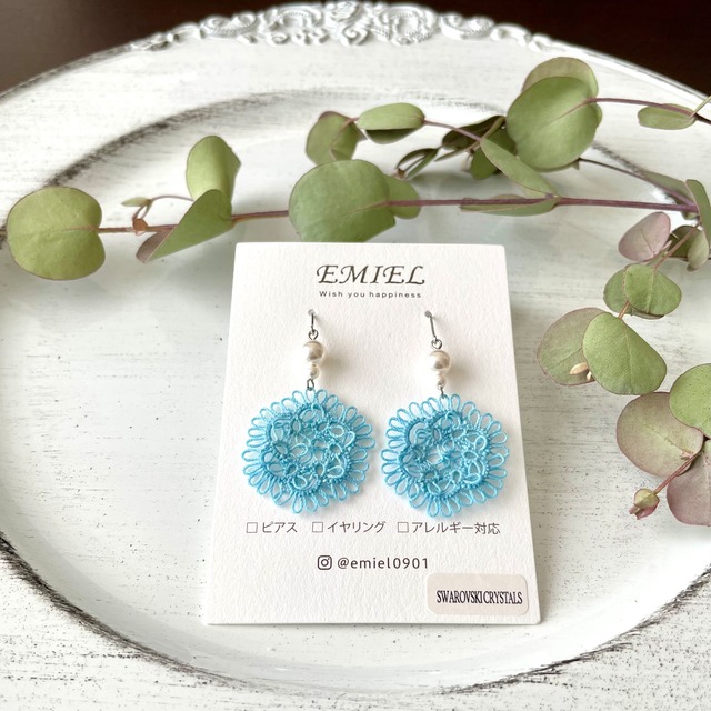イヤリングはネジバネ式と樹脂ノンホールピアスもご用意しております。