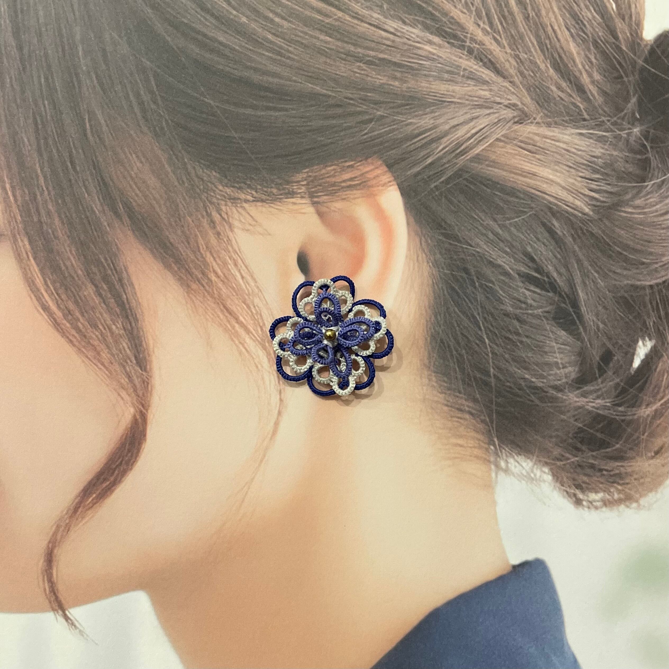 KiZuNa〜luire〜シルク糸*藤鳩羽・銀砂子・瑠璃色レースのピアス・イヤリング▶︎ 14kgf使用*国内送料無料