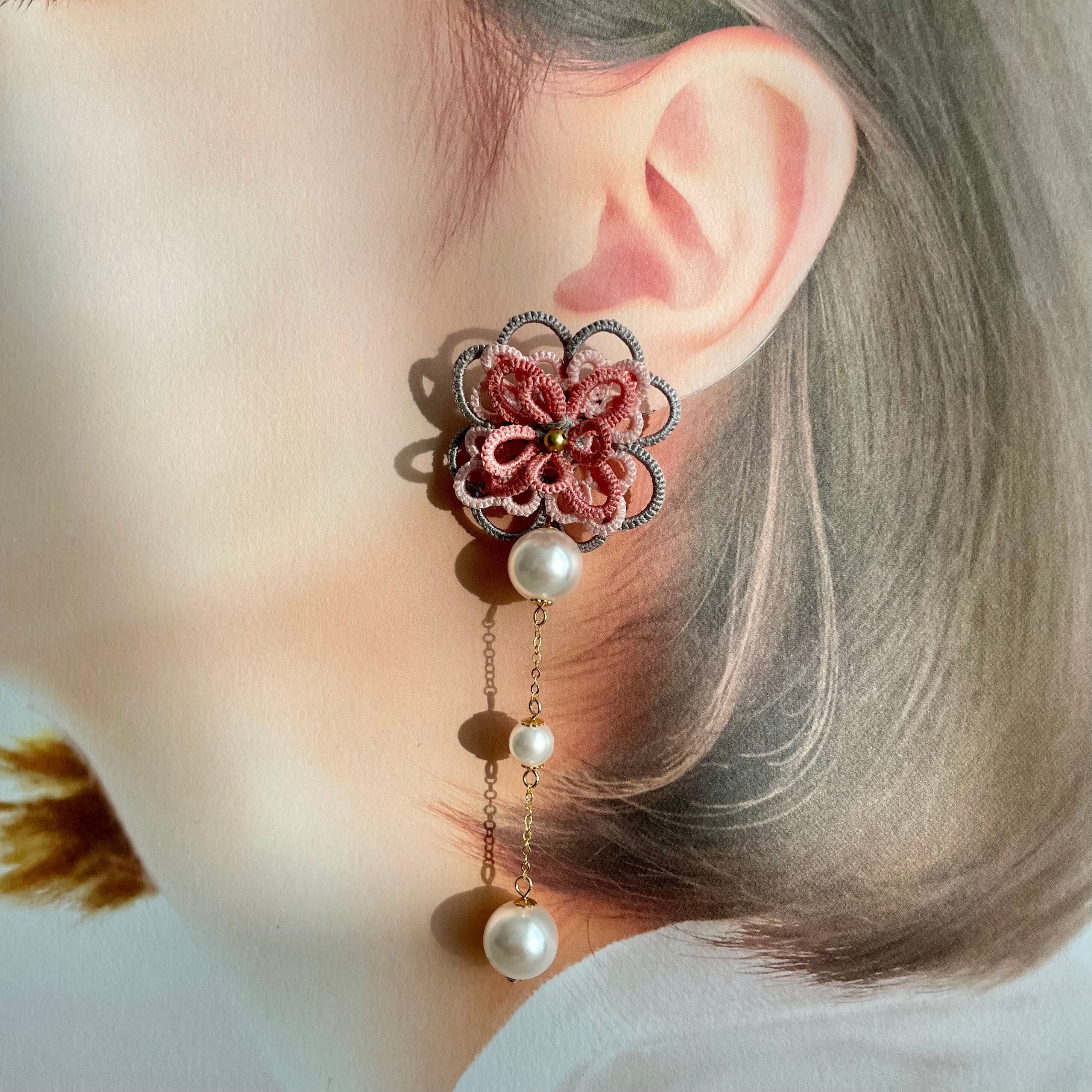 ◉イヤリングは、先端に丸い金具を付けているので、