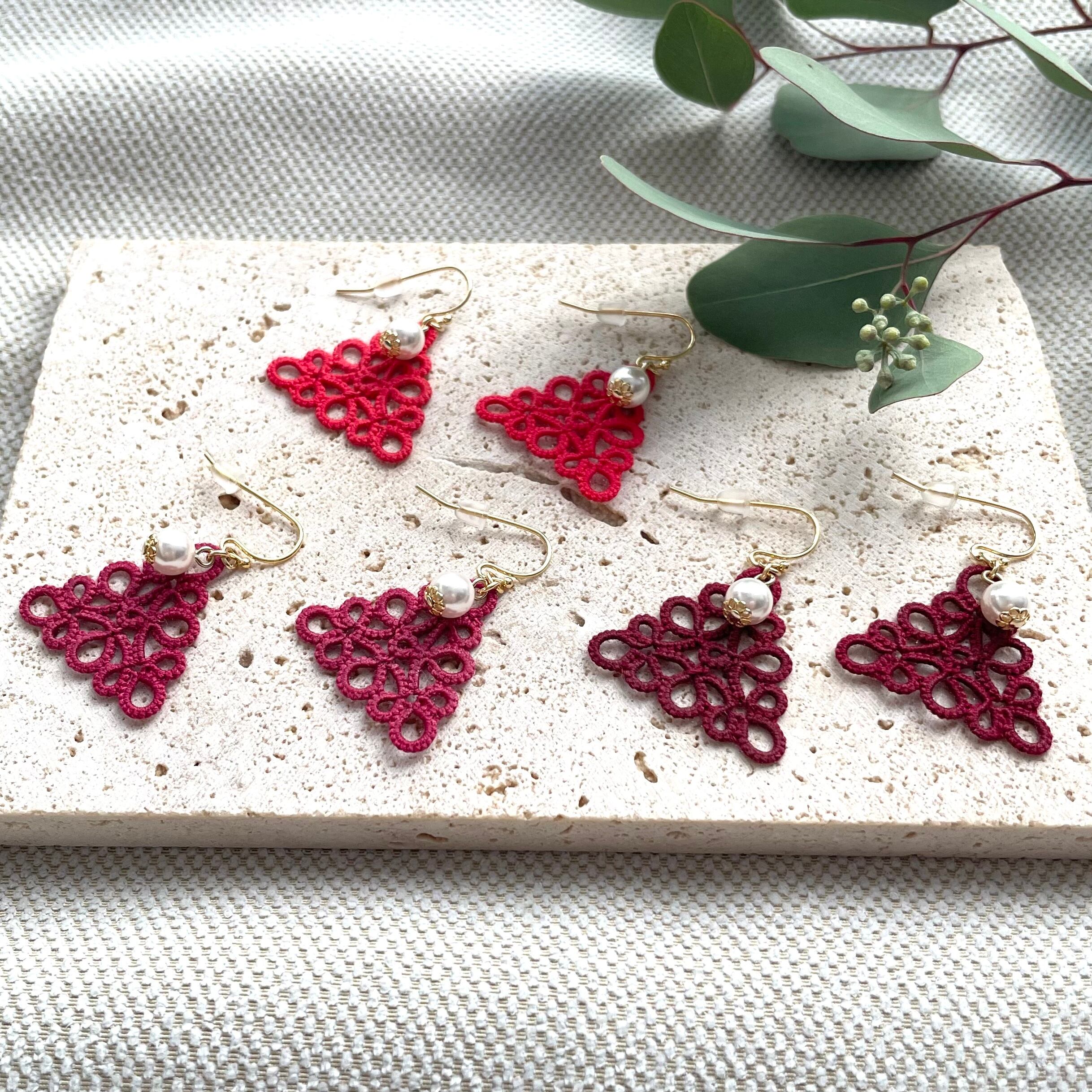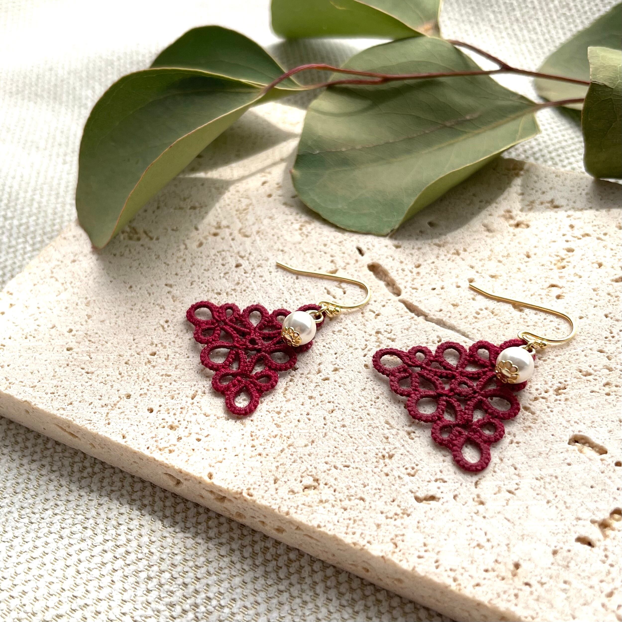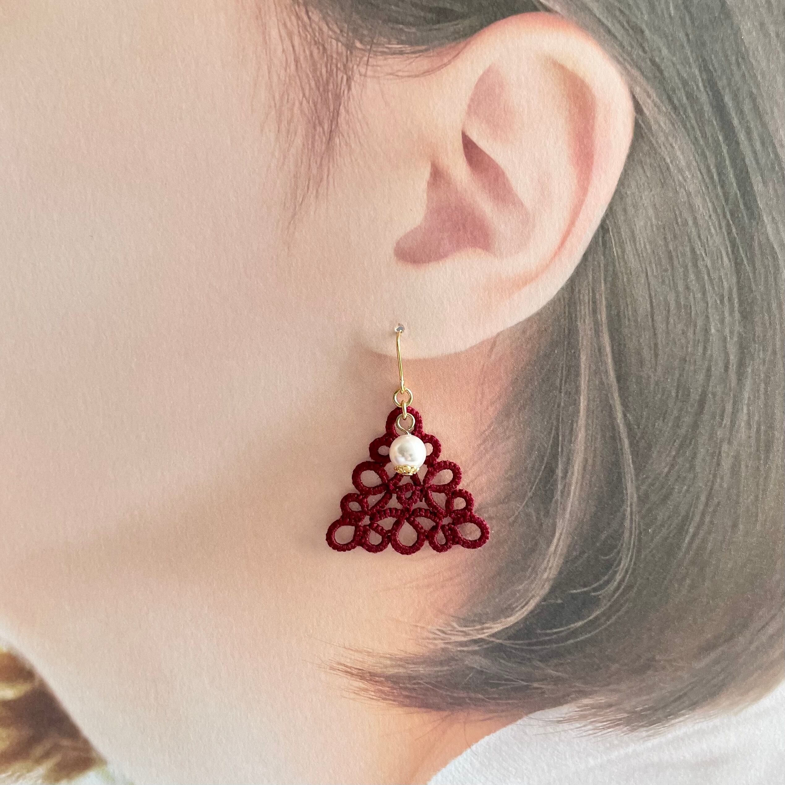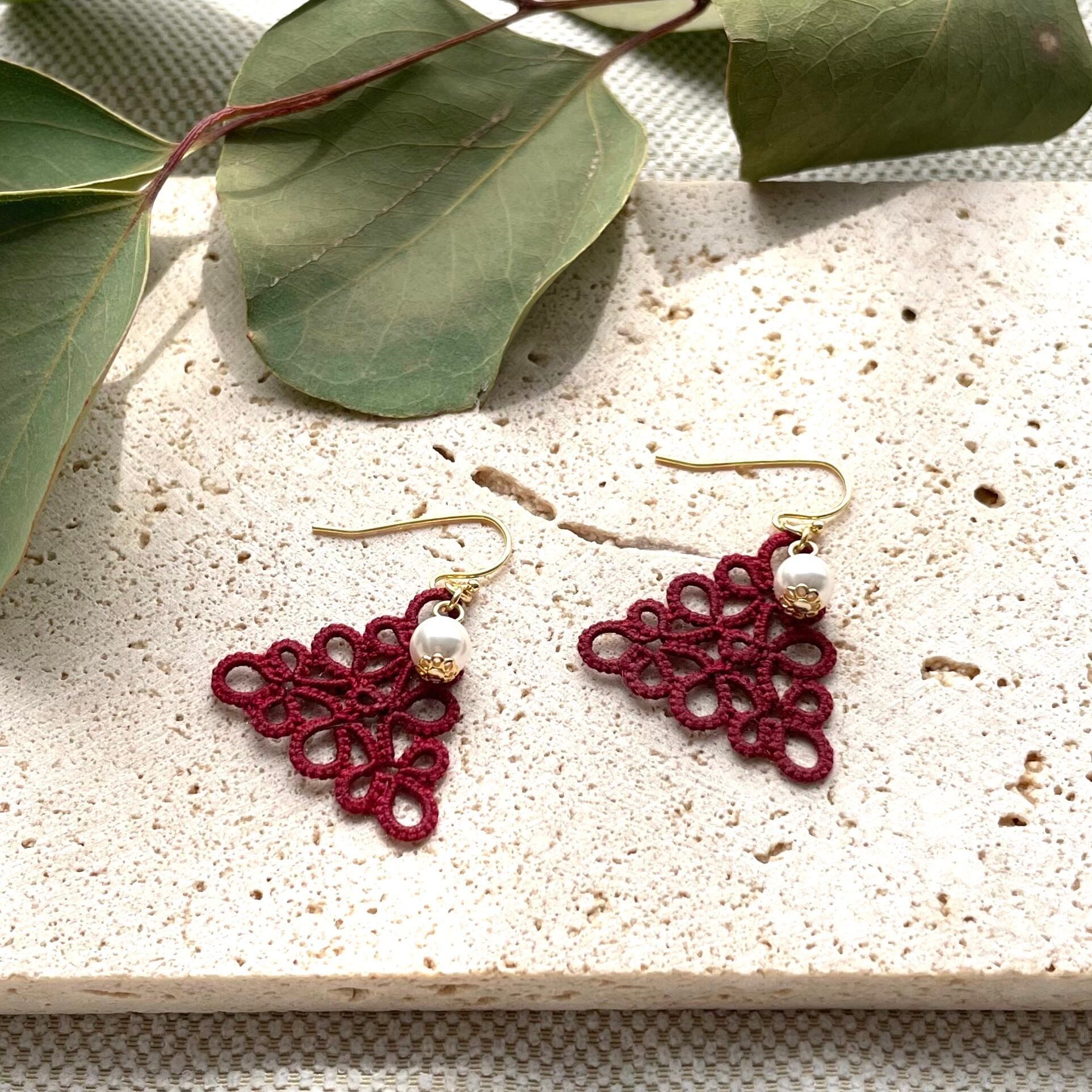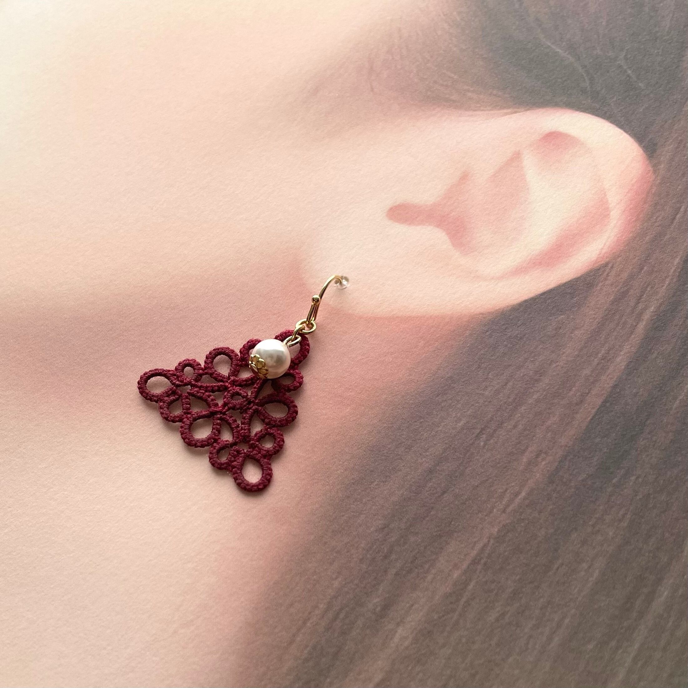 三角モチーフ*えんじ色レースのピアス・イヤリング