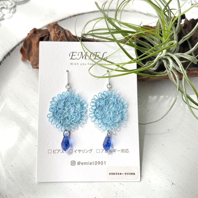 お花モチーフ*空色レース×サファイアのピアス・イヤリング