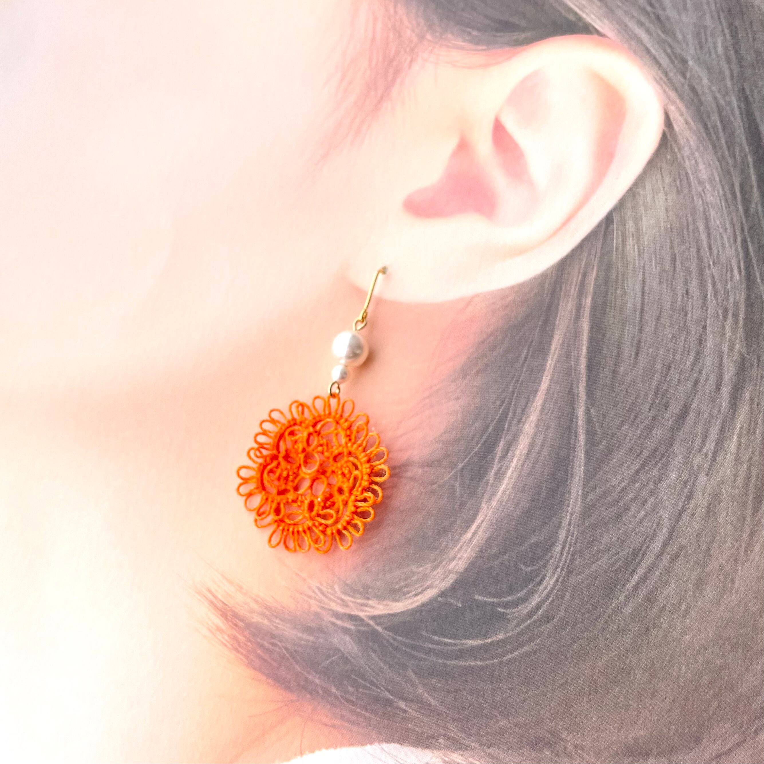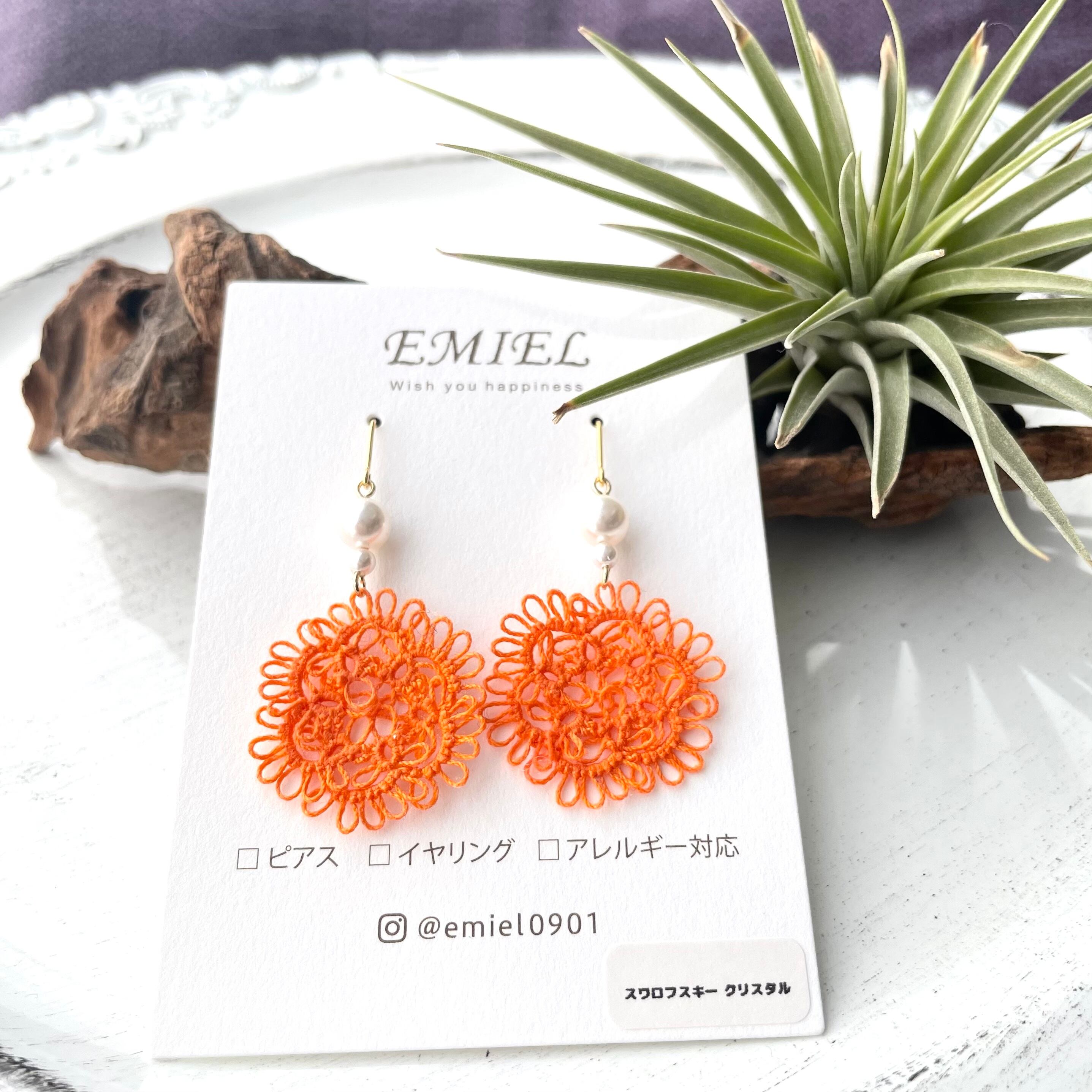 お花モチーフ*橙色レースのピアス・イヤリング