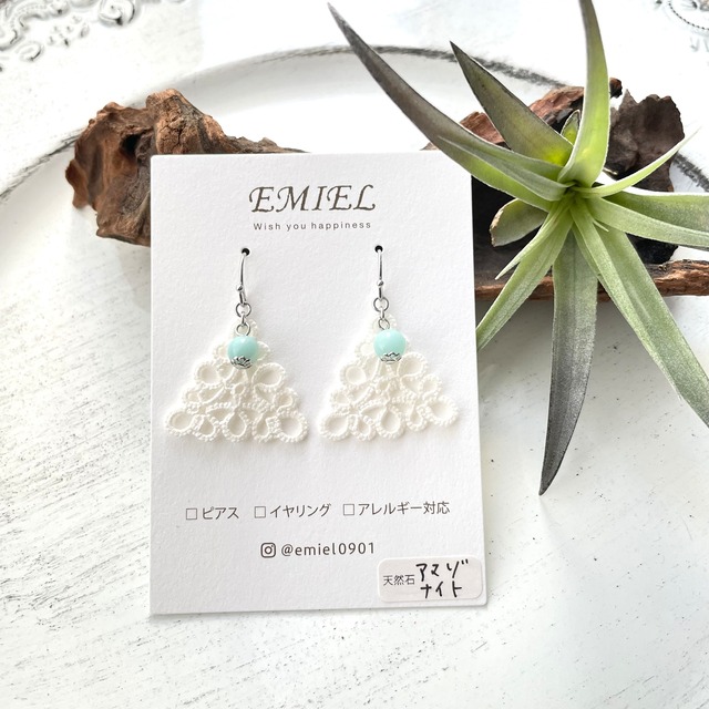 三角モチーフ*白色×アマゾナイトのピアス・イヤリング
